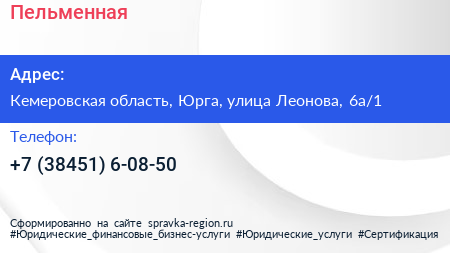 Пельменная по адресу Кемеровская область, Юрга, улица Леонова, 6а/1 в дальнейшем Организация, размещена в следующих категориях: