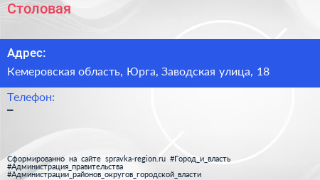 Столовая по адресу Кемеровская область, Юрга, Заводская улица, 18 в дальнейшем Организация, размещена в следующих категориях: