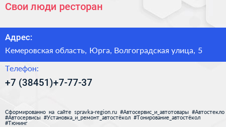 Свои люди, ресторан по адресу Кемеровская область, Юрга, Волгоградская улица, 5 в дальнейшем Организация, размещена в следующих категориях: