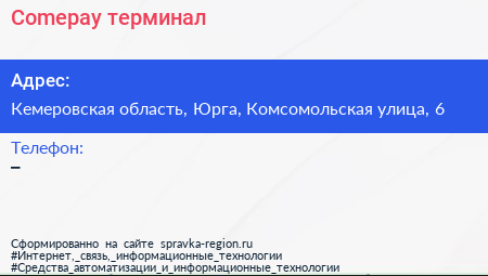 Comepay, терминал по адресу Кемеровская область, Юрга, Комсомольская улица, 6 в дальнейшем Организация, размещена в следующих категориях: