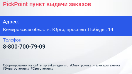 PickPoint, пункт выдачи заказов по адресу Кемеровская область, Юрга, проспект Победы, 14 в дальнейшем Организация, размещена в следующих категориях:
