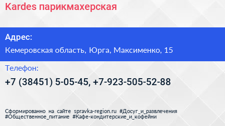 Kardes, парикмахерская по адресу Кемеровская область, Юрга, Максименко, 15 в дальнейшем Организация, размещена в следующих категориях: