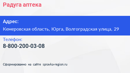 Радуга, аптека по адресу Кемеровская область, Юрга, Волгоградская улица, 29 в дальнейшем Организация, размещена в следующих категориях: