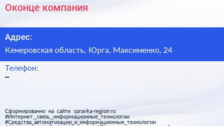 Оконце, компания по адресу Кемеровская область, Юрга, Максименко, 24 в дальнейшем Организация, размещена в следующих категориях: