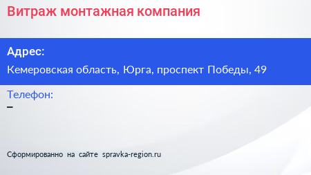 Витраж, монтажная компания по адресу Кемеровская область, Юрга, проспект Победы, 49 в дальнейшем Организация, размещена в следующих категориях: