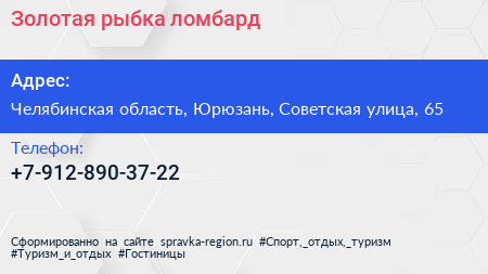 Золотая рыбка, ломбард по адресу Челябинская область, Юрюзань, Советская улица, 65 в дальнейшем Организация, размещена в следующих категориях:
