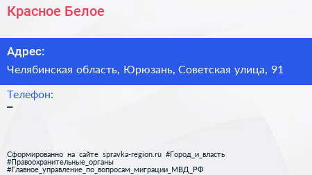 Красное & Белое по адресу Челябинская область, Юрюзань, Советская улица, 91 в дальнейшем Организация, размещена в следующих категориях: