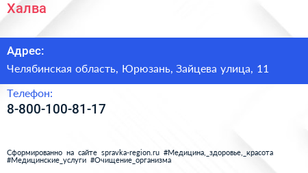 Халва по адресу Челябинская область, Юрюзань, Зайцева улица, 11 в дальнейшем Организация, размещена в следующих категориях: