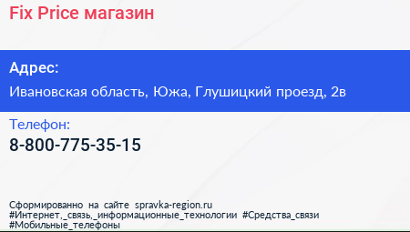 Fix Price, магазин по адресу Ивановская область, Южа, Глушицкий проезд, 2в в дальнейшем Организация, размещена в следующих категориях: