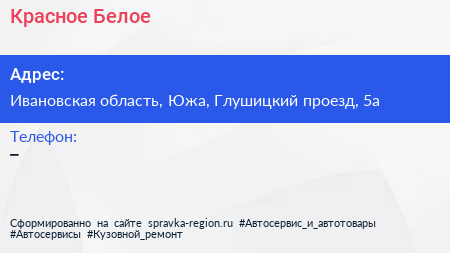 Красное & Белое по адресу Ивановская область, Южа, Глушицкий проезд, 5а в дальнейшем Организация, размещена в следующих категориях:
