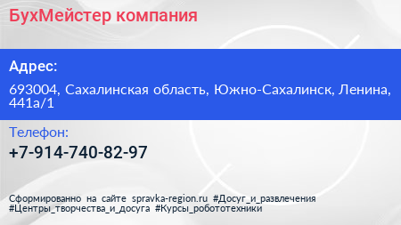 БухМейстер, компания по адресу 693004, Сахалинская область, Южно-Сахалинск, Ленина, 441а/1 в дальнейшем Организация, размещена в следующих категориях: