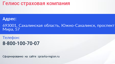Гелиос, страховая компания по адресу 693001, Сахалинская область, Южно-Сахалинск, проспект Мира, 57 в дальнейшем Организация, размещена в следующих категориях: