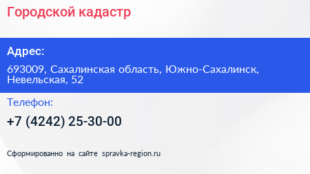 Городской кадастр по адресу 693009, Сахалинская область, Южно-Сахалинск, Невельская, 52 в дальнейшем Организация, размещена в следующих категориях: