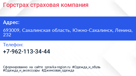 Горстрах, страховая компания по адресу 693009, Сахалинская область, Южно-Сахалинск, Ленина, 232 в дальнейшем Организация, размещена в следующих категориях: