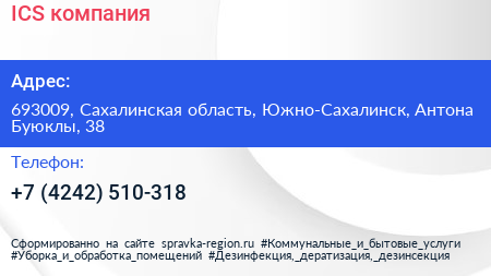 ICS, компания по адресу 693009, Сахалинская область, Южно-Сахалинск, Антона Буюклы, 38 в дальнейшем Организация, размещена в следующих категориях: