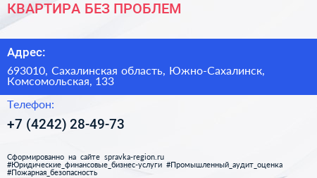 КВАРТИРА БЕЗ ПРОБЛЕМ по адресу 693010, Сахалинская область, Южно-Сахалинск, Комсомольская, 133 в дальнейшем Организация, размещена в следующих категориях: