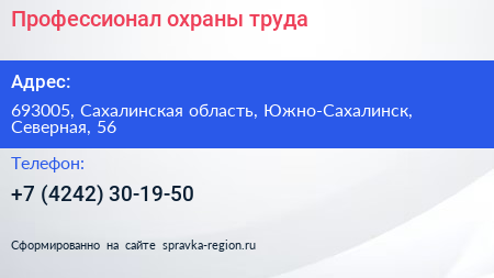 Профессионал охраны труда по адресу 693005, Сахалинская область, Южно-Сахалинск, Северная, 56 в дальнейшем Организация, размещена в следующих категориях: