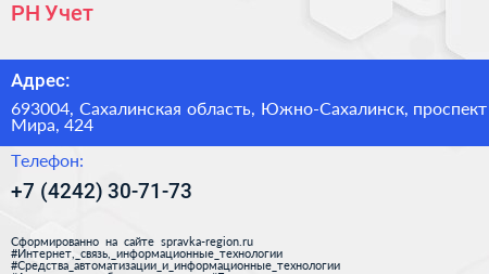 РН-Учет по адресу 693004, Сахалинская область, Южно-Сахалинск, проспект Мира, 424 в дальнейшем Организация, размещена в следующих категориях: