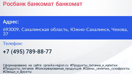 Росбанк, банкомат, банкомат по адресу 693009, Сахалинская область, Южно-Сахалинск, Чехова, 37 в дальнейшем Организация, размещена в следующих категориях: