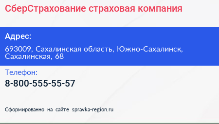 СберСтрахование, страховая компания по адресу 693009, Сахалинская область, Южно-Сахалинск, Сахалинская, 68 в дальнейшем Организация, размещена в следующих категориях: