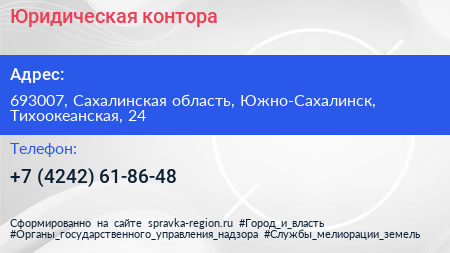 Юридическая контора по адресу 693007, Сахалинская область, Южно-Сахалинск, Тихоокеанская, 24 в дальнейшем Организация, размещена в следующих категориях: