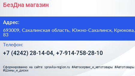 БезДна, магазин по адресу 693009, Сахалинская область, Южно-Сахалинск, Крюкова, 83 в дальнейшем Организация, размещена в следующих категориях: