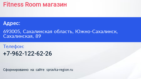 Fitness Room, магазин по адресу 693005, Сахалинская область, Южно-Сахалинск, Сахалинская, 89 в дальнейшем Организация, размещена в следующих категориях: