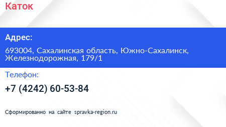Каток по адресу 693004, Сахалинская область, Южно-Сахалинск, Железнодорожная, 179/1 в дальнейшем Организация, размещена в следующих категориях: