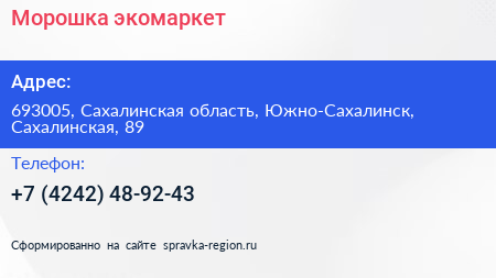Морошка, экомаркет по адресу 693005, Сахалинская область, Южно-Сахалинск, Сахалинская, 89 в дальнейшем Организация, размещена в следующих категориях: