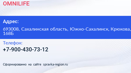 OMNILIFE по адресу 693008, Сахалинская область, Южно-Сахалинск, Крюкова, 168Б в дальнейшем Организация, размещена в следующих категориях: