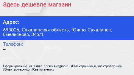 Здесь дешевле, магазин по адресу 693006, Сахалинская область, Южно-Сахалинск, Емельянова, 34а/1 в дальнейшем Организация, размещена в следующих категориях:
