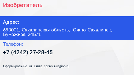 Изобретатель+ по адресу 693001, Сахалинская область, Южно-Сахалинск, Бумажная, 24Б/1 в дальнейшем Организация, размещена в следующих категориях:
