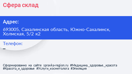 Сфера, склад по адресу 693005, Сахалинская область, Южно-Сахалинск, Холмская, 5/2 к2 в дальнейшем Организация, размещена в следующих категориях: