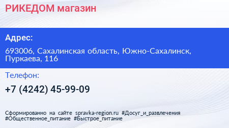 РИКЕДОМ, магазин по адресу 693006, Сахалинская область, Южно-Сахалинск, Пуркаева, 116 в дальнейшем Организация, размещена в следующих категориях: