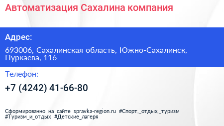 Автоматизация Сахалина, компания по адресу 693006, Сахалинская область, Южно-Сахалинск, Пуркаева, 116 в дальнейшем Организация, размещена в следующих категориях: