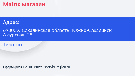 Matrix, магазин по адресу 693009, Сахалинская область, Южно-Сахалинск, Амурская, 29 в дальнейшем Организация, размещена в следующих категориях: