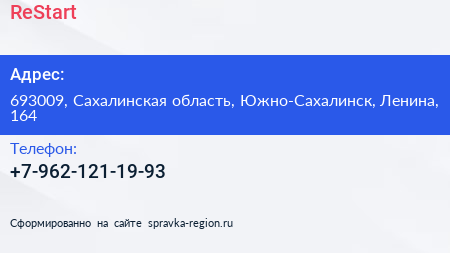 ReStart по адресу 693009, Сахалинская область, Южно-Сахалинск, Ленина, 164 в дальнейшем Организация, размещена в следующих категориях: