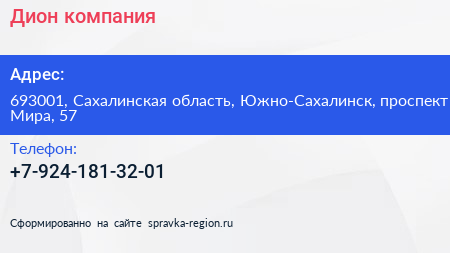 Дион, компания по адресу 693001, Сахалинская область, Южно-Сахалинск, проспект Мира, 57 в дальнейшем Организация, размещена в следующих категориях: