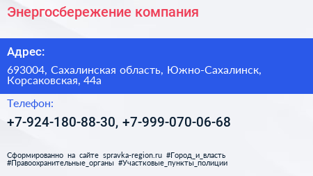 Энергосбережение, компания по адресу 693004, Сахалинская область, Южно-Сахалинск, Корсаковская, 44а в дальнейшем Организация, размещена в следующих категориях: