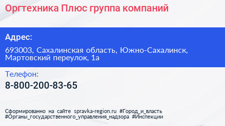 Оргтехника Плюс, группа компаний по адресу 693003, Сахалинская область, Южно-Сахалинск, Мартовский переулок, 1а в дальнейшем Организация, размещена в следующих категориях: