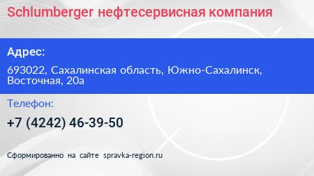 Schlumberger, нефтесервисная компания по адресу 693022, Сахалинская область, Южно-Сахалинск, Восточная, 20а в дальнейшем Организация, размещена в следующих категориях: