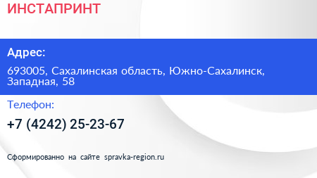 ИНСТАПРИНТ по адресу 693005, Сахалинская область, Южно-Сахалинск, Западная, 58 в дальнейшем Организация, размещена в следующих категориях: