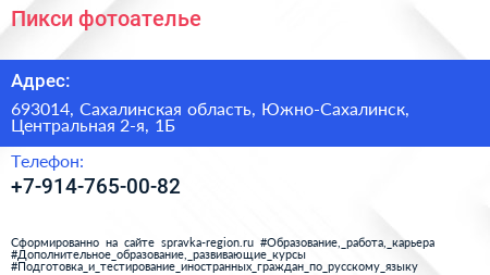 Пикси, фотоателье по адресу 693014, Сахалинская область, Южно-Сахалинск, Центральная 2-я, 1Б в дальнейшем Организация, размещена в следующих категориях: