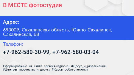 В*МЕСТЕ, фотостудия по адресу 693009, Сахалинская область, Южно-Сахалинск, Сахалинская, 68 в дальнейшем Организация, размещена в следующих категориях: