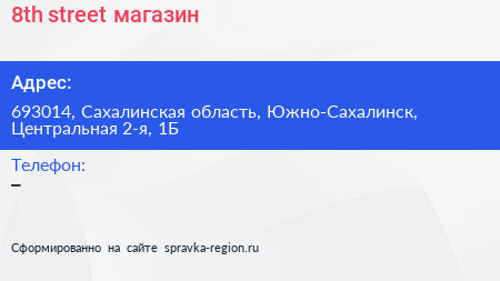 8th street, магазин по адресу 693014, Сахалинская область, Южно-Сахалинск, Центральная 2-я, 1Б в дальнейшем Организация, размещена в следующих категориях: