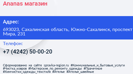 Ananas, магазин по адресу 693023, Сахалинская область, Южно-Сахалинск, проспект Мира, 231 в дальнейшем Организация, размещена в следующих категориях: