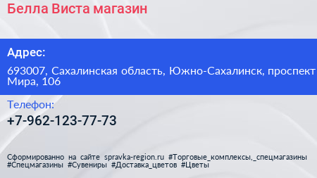 Белла Виста, магазин по адресу 693007, Сахалинская область, Южно-Сахалинск, проспект Мира, 106 в дальнейшем Организация, размещена в следующих категориях: