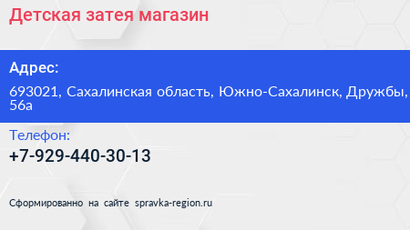Детская затея, магазин по адресу 693021, Сахалинская область, Южно-Сахалинск, Дружбы, 56а в дальнейшем Организация, размещена в следующих категориях: