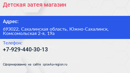 Детская затея, магазин по адресу 693022, Сахалинская область, Южно-Сахалинск, Комсомольская 2-я, 19а в дальнейшем Организация, размещена в следующих категориях:
