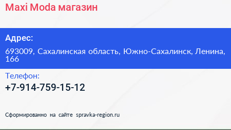 Maxi Moda, магазин по адресу 693009, Сахалинская область, Южно-Сахалинск, Ленина, 166 в дальнейшем Организация, размещена в следующих категориях: